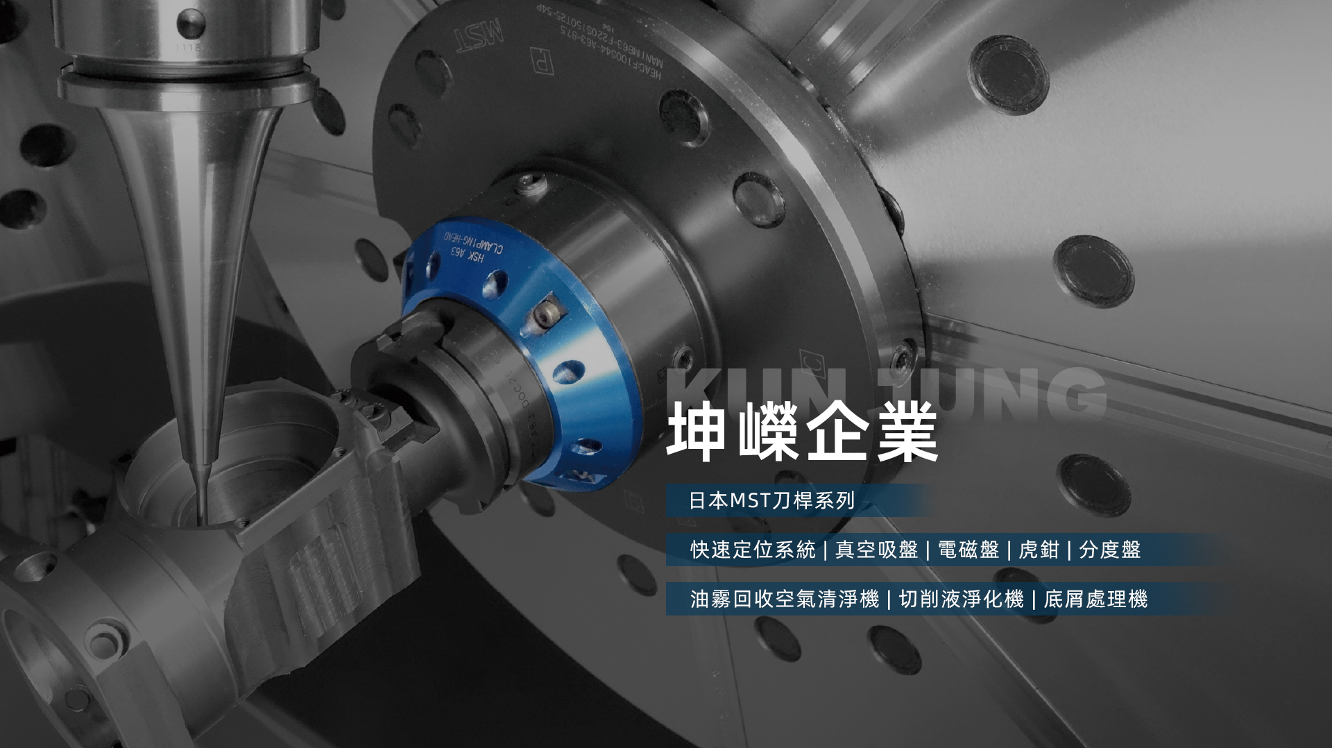 創立於1979年,專門代理銷售各國知名CNC銑床配件。以專業的知識結合優良的產品,並提供客戶最完善的售後服務! 主要產品以燒結刀桿、五軸刀桿、超精密燒結刀桿、袖珍型角度頭、抗震刀桿、搪孔刀桿、絲攻刀桿、五軸夾治具、四軸分度盤、五軸分度盤、五軸虎鉗、倍力虎鉗、刀桿清洗機、快速定位治具、筒夾刀桿、CBN刀具、油霧回收機等產品。